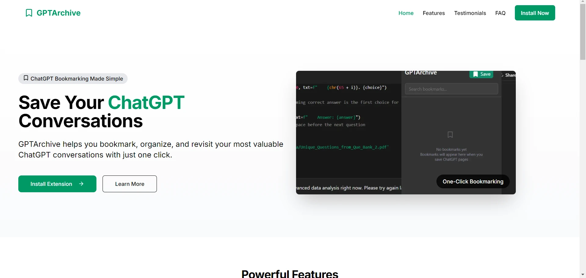 A browser extension to bookmark and organize ChatGPT conversations for quick access and better management, enhancing productivity for AI chat users.